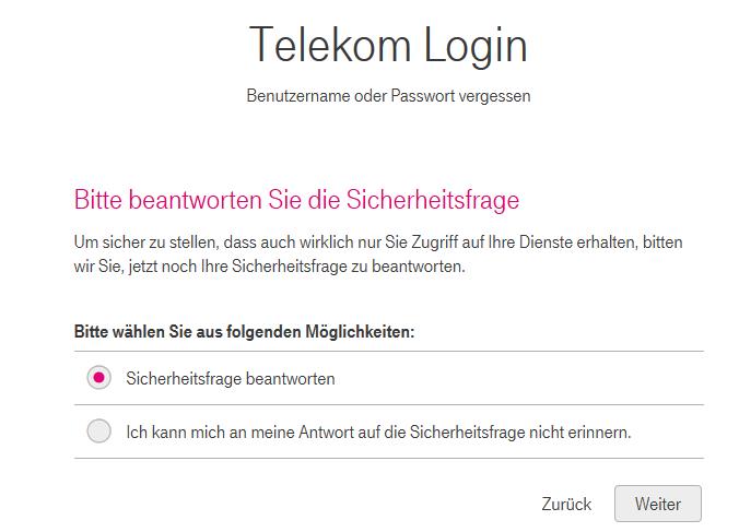 Dort beantworten sie dann die hinterlegte Sicherheitsfrage. Diese Fragen haben sie bei der Eröffnung ihrer T-Online Mail hinterlegt.