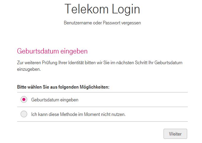 Hier geben sie dann ihr Geburtsdatum ein und klicken auf den „Weiter“ Button. Sie werden nun auf folgende Seite weitergeleitet.